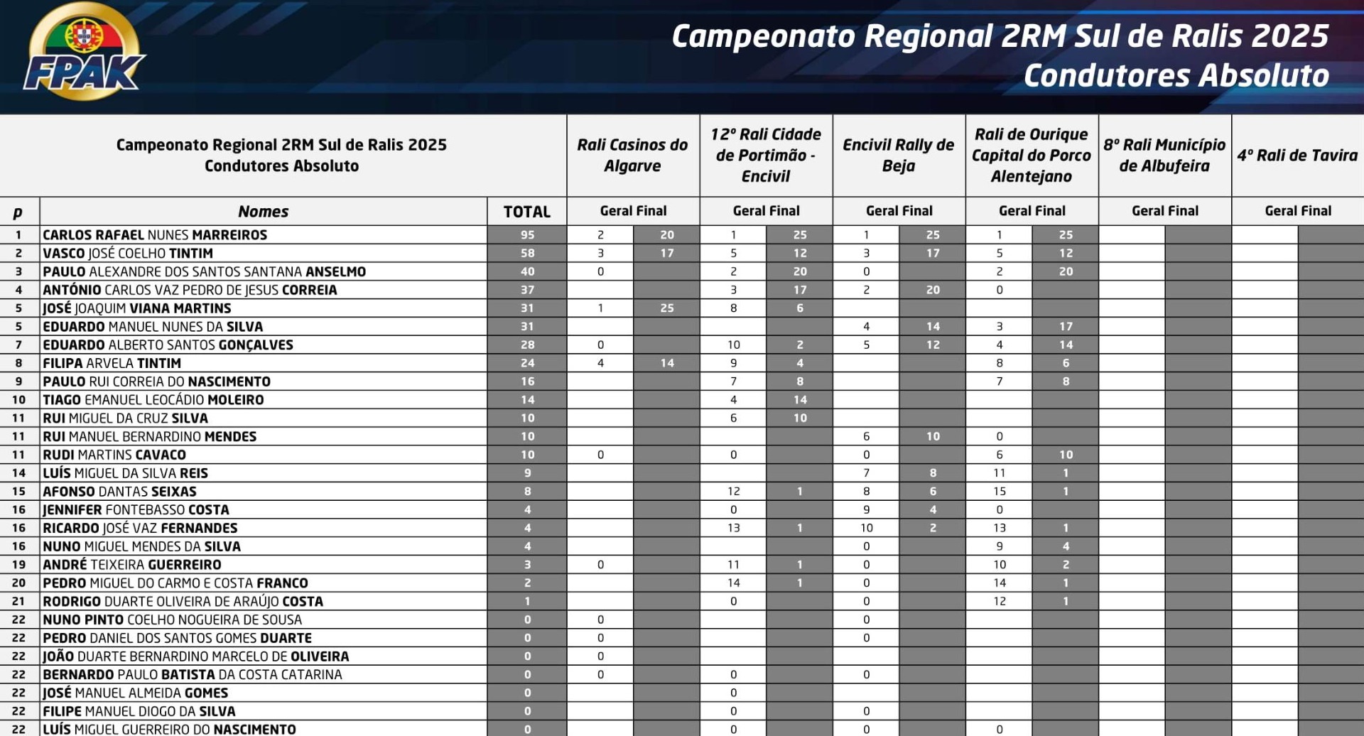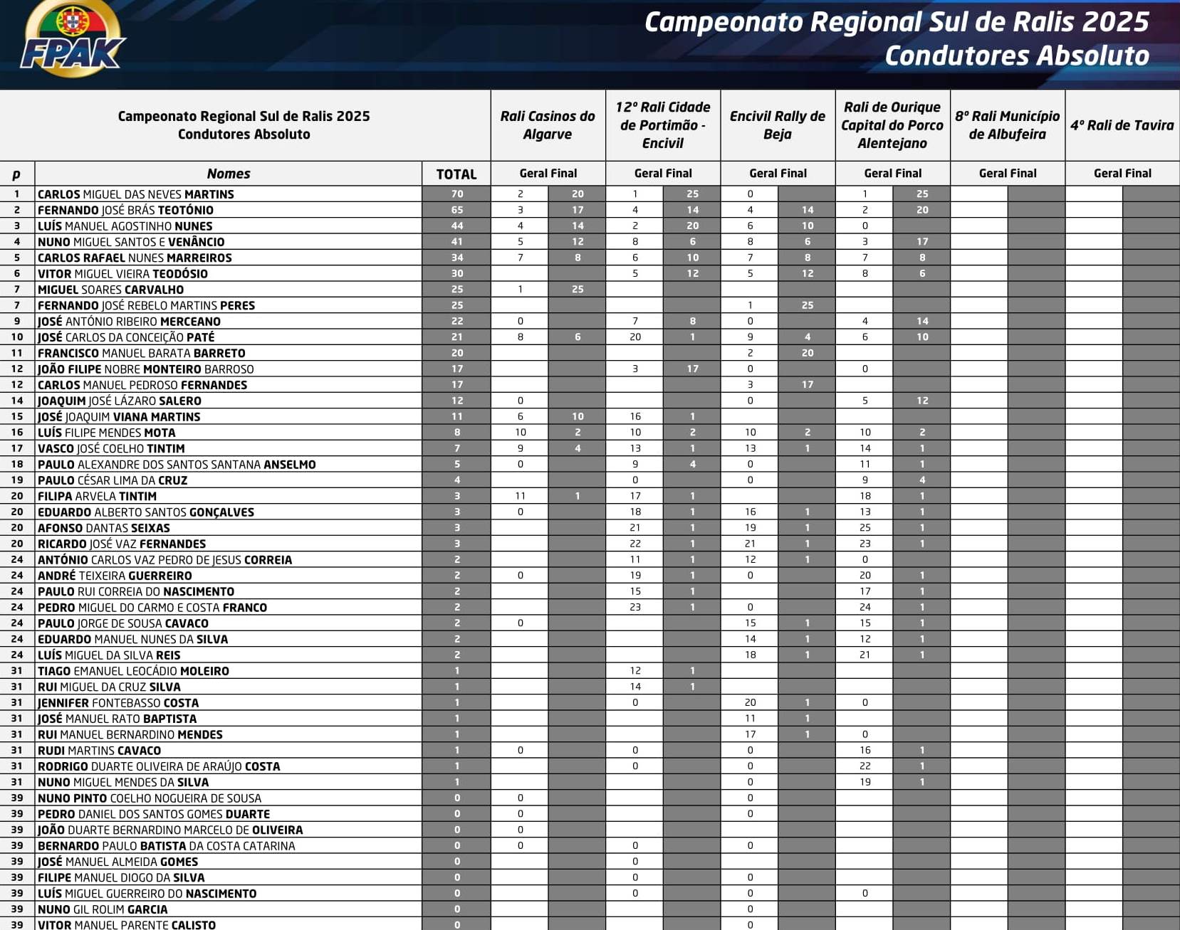Classificações do Campeonato Sul de Ralis