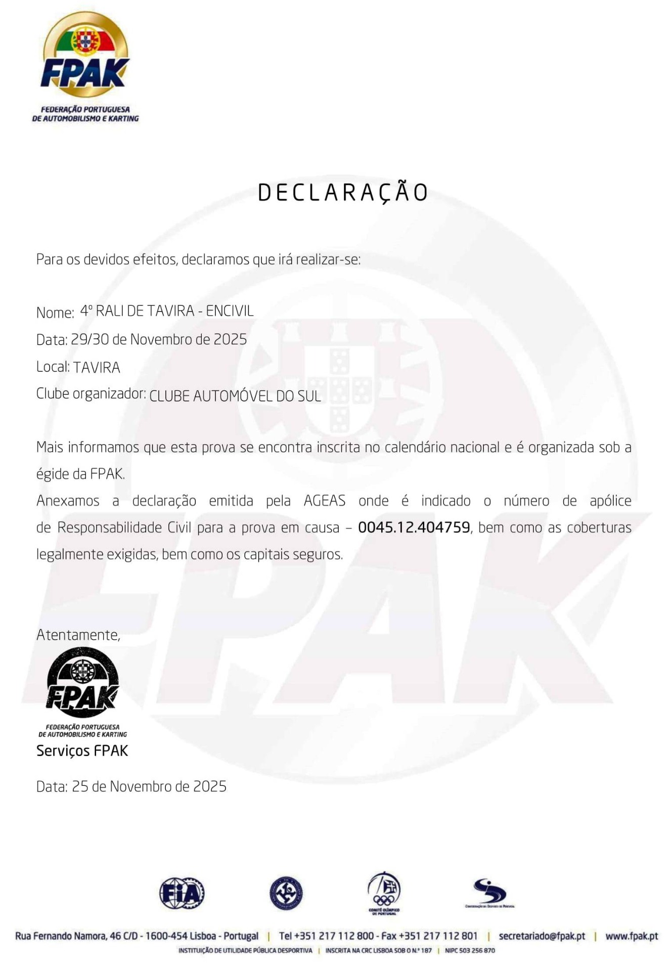 Encivil Rally de Tavira (Google Maps) + Declaração FPAK + Declaração Ageas